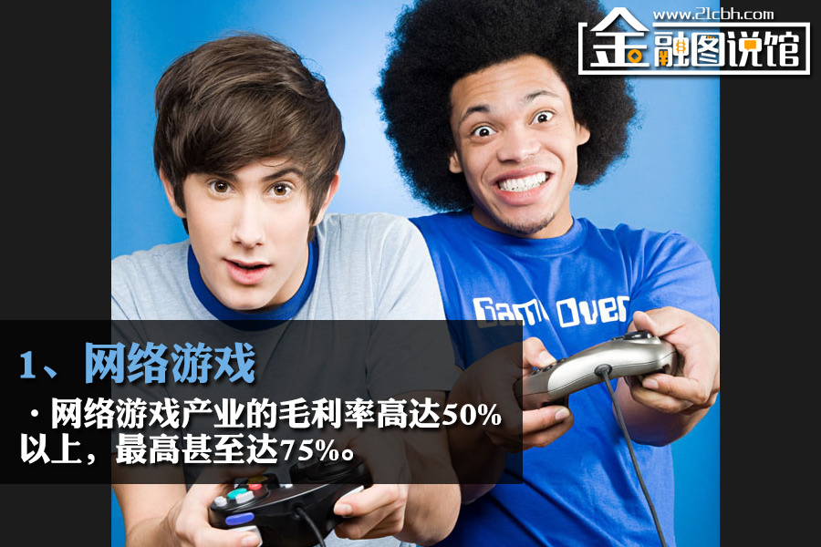 有资料称,网络游戏产业的毛利率高达50%以上,最高甚至达75%,净利率也在25%~50%之间。一方面,厂商只需对网络游戏进行维护与升级管理,无需厂房、仓储与制造,大大节约了成本。另一方面,网络游戏的游戏编码存储在一个安全系数很高的服务器上,减少盗版可能。
