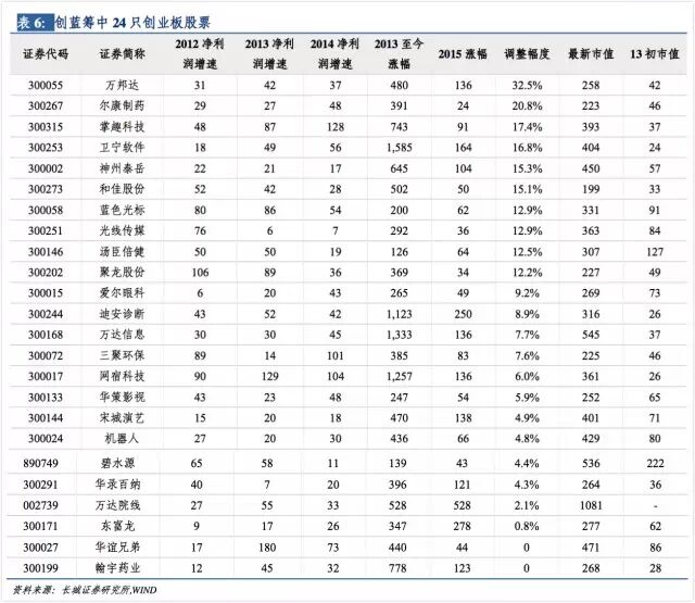 创业板和中小板中的龙头,成长迅速,业绩有保障,市值增长空间大,且在本轮牛市中迅速成长,获得资本市场的青睐,未来有望接替主板中的旧蓝筹成为未来中国股票市场和中国企业的中坚力量。