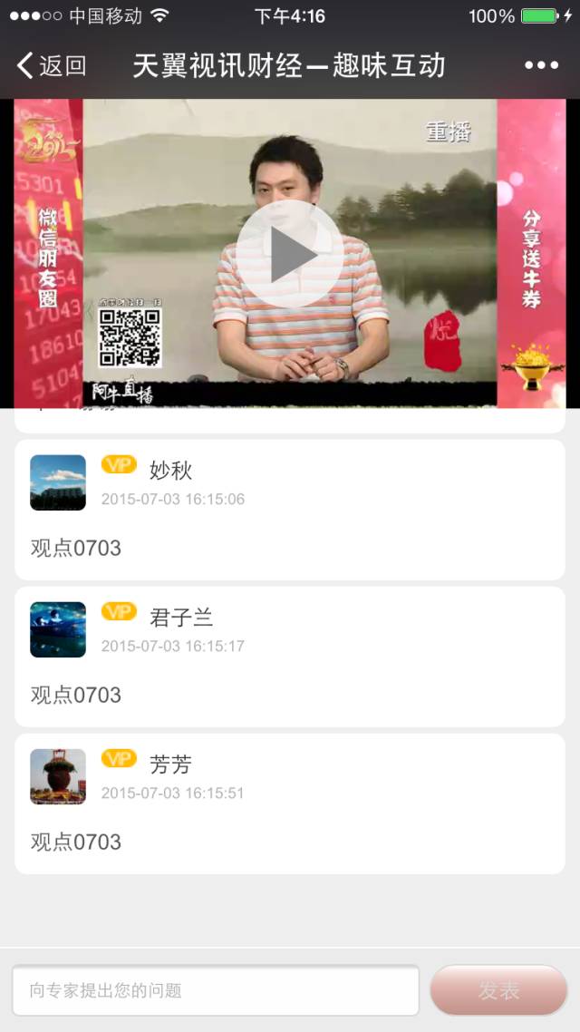 天翼视讯财经微信功能全上线啦~