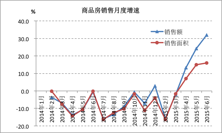三则股市资金跑步进入房市。从2015年3月份开始,寡淡的房市似候鸟归来,一线城市房价开始上涨,全国4、5、6三个月商品房销售额增速节节高,分别达到13.3%、24.3%和32.1%。毫无疑问,大量股市获利资金已经转移至房地产市场,短期也不可能再回到股市中来。