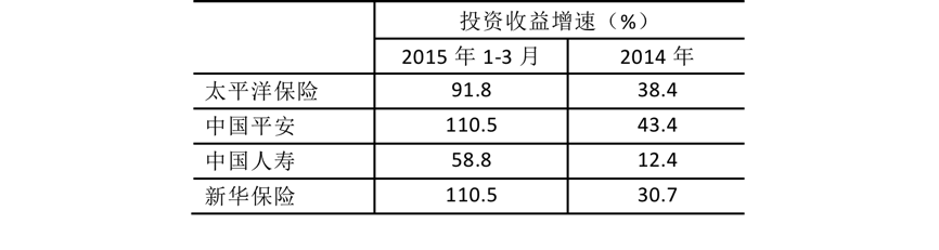 保险业在国民经济核算中是一个比较特殊的行业,原因在于其他行业均不能将投资收益算作增加值,唯独保险业可以。一般而言,保费收入增长比较稳定,而投资收益年度之间波动较大。笔者查阅了A股四家保险业上市公司的一季度年报,均提及由于资本市场波动上行,投资买卖差价收益巨大。如下表所示,所有公司投资收益增速均实现翻番。从保险业投资组合偏蓝筹偏债的稳健风格以及国家护盘行为推测,下半年保险业投资收益虽然会缩水,但总体应高于2014年增速。