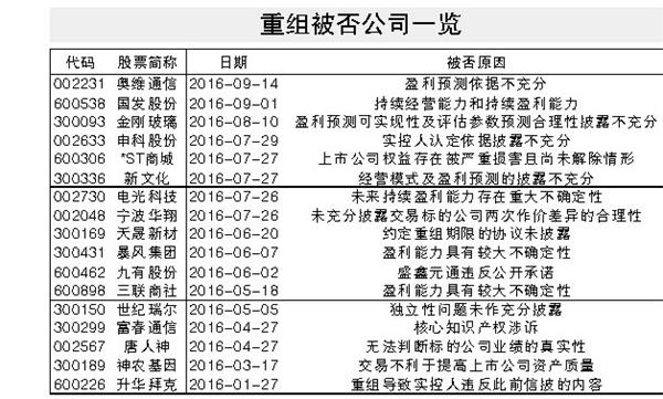 今年以来17起并购重组被否 盈利问题成“重灾区”