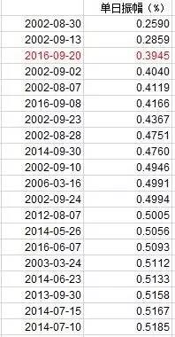 继9月8日创14年新低,昨日沪指振幅再度刷出14年新低!上证综指最低3015.88,最高3027.82,上下波动就12个点,振幅仅0.3945%!上证综指最近一个振幅低于这个数值的交易日是2002年9月13日,当时振幅为0.2859%,该振幅也是2000年以来A股最低振幅。创业板指数昨日振幅0.6328%,也是2010年6月该指数设立以来第二低,仅高于2014年8月4日的0.5693%。